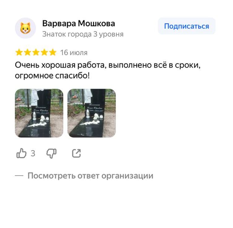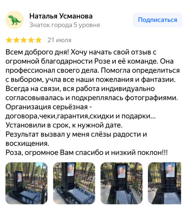 Отзывы о наших памятниках в Тюмени: что говорят те, кто уже заказал и установил
